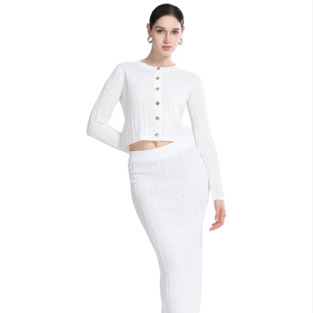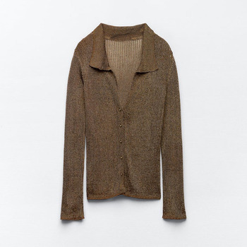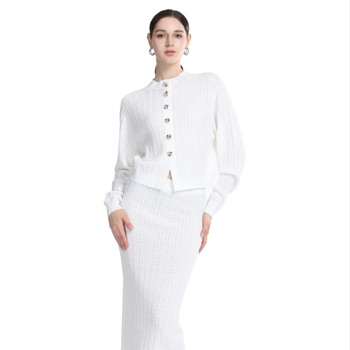 Nút kim loại trang trí Phi Hành Đoàn cổ cáp đan ngắn cardigan cho phong cách thanh lịch