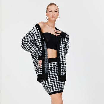 Mùa Thu Mới Thời Trang Của Phụ Nữ Dài Tay Lỏng Lẻo Sọc Ca rô Đan Áo Len Áo Khoác & Váy Thanh Lịch & Giản Dị In Trang Trí
