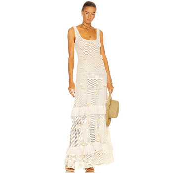 Ren Crochet vest dài dệt kim ăn mặc giản dị phụ nữ quần lót bán buôn 2025 mùa hè Áo len OEM dịch vụ đơn giản cung cấp