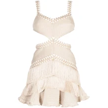 2025 Elegant Ladies Tailored Summer Fit V Neck Sleeveless Dress Casual Mini Dress Luxury Metal Cutout Tassel Dress